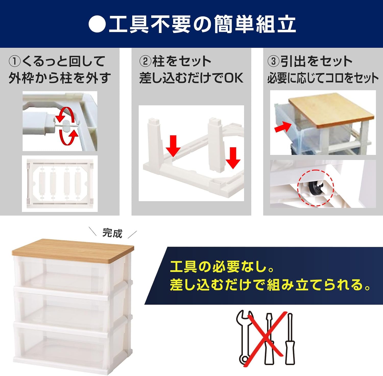 The wooden top is made of a durable honeycomb construction, and includes a drawer stopper to prevent drawers from falling out! Comes with a handy type that is convenient for quick transportation of cleaning and redecorating.
